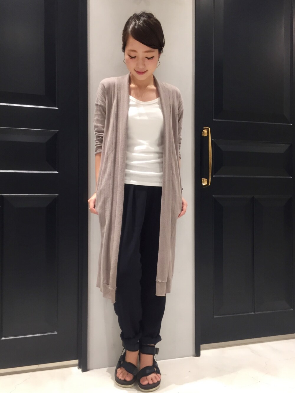 シンプルなTシャツ+とろみ感が絶妙なリラックスパンツにロングカーディガンを合わせて存在感UP! さらりとした手触りが心地よいリラックスパンツは、ウエストゴムで楽ちんです! 足元は人気のSUICOKEでカジュアルさをプラスして今年らしく♪