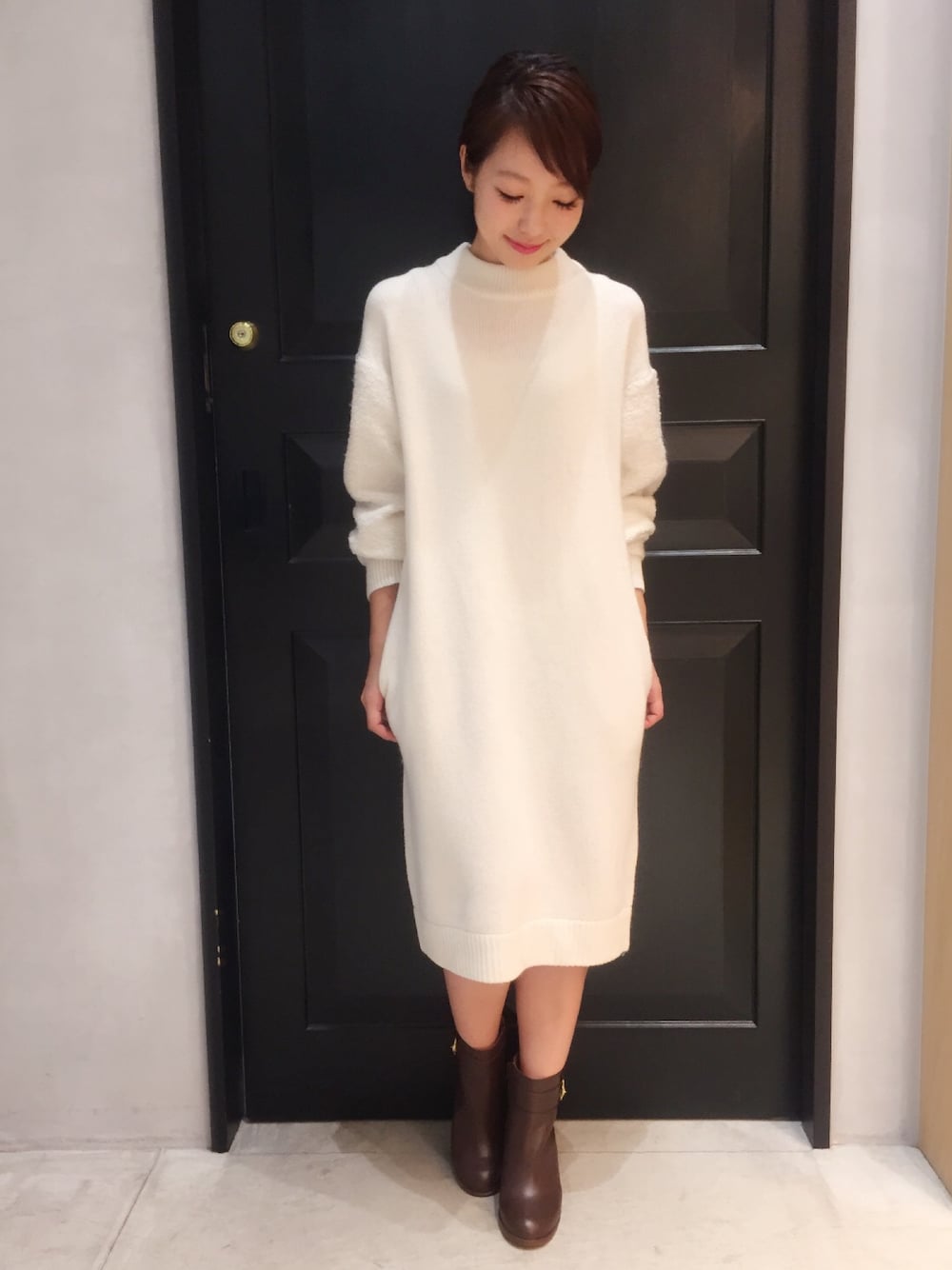 fuchiko(NERGY 渋谷スクランブルスクエア)のワンピース「ラムナイロンループコンビワンピース」を使ったコーディネート