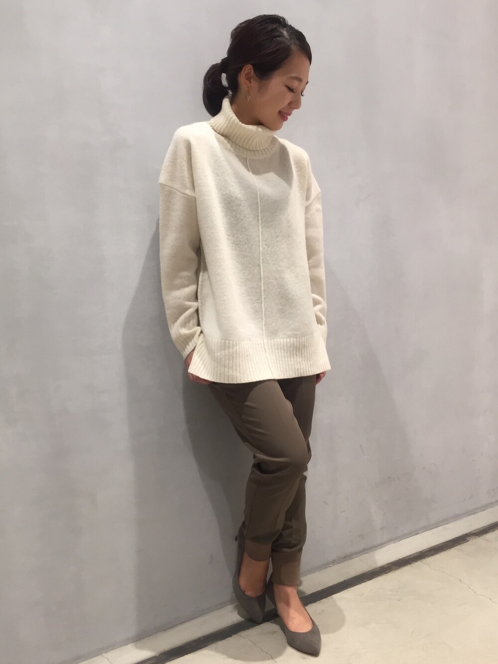 ラムズウールを使用した、天竺タートルネックニット。チクチクしない、滑らかな肌触り♪ ふんわりとした素材感は肌触りも心地よく着用いただけます。 ドルマン仕様で肩が落ちる抜け感が女性らしさをプラスしてくれます! ボトムにリブパンツ、足元にはパンプスを合わせて、キレイめなコーディネートの完成♪
