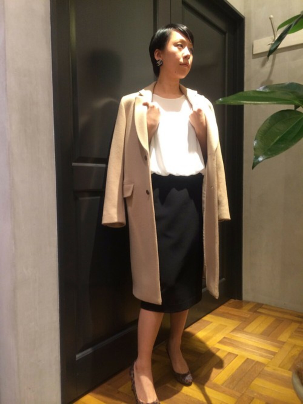 シンプルなワンピースにトレンドのチェスターコートでかっちり感を出してお出掛けスタイルにしました!