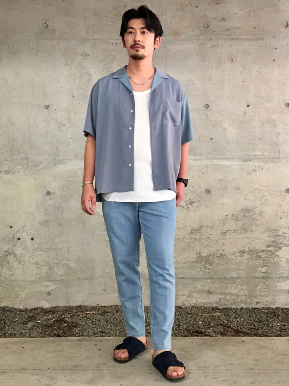 淡色ルード風 ご覧頂きありがとうございます。 ボーラーシャツのような雰囲気に合わせて男らしく。 同色の切り替えがさりげないオープンカラーシャツ。 涼しい着心地です。 アイテム詳細も是非ご覧下さい。