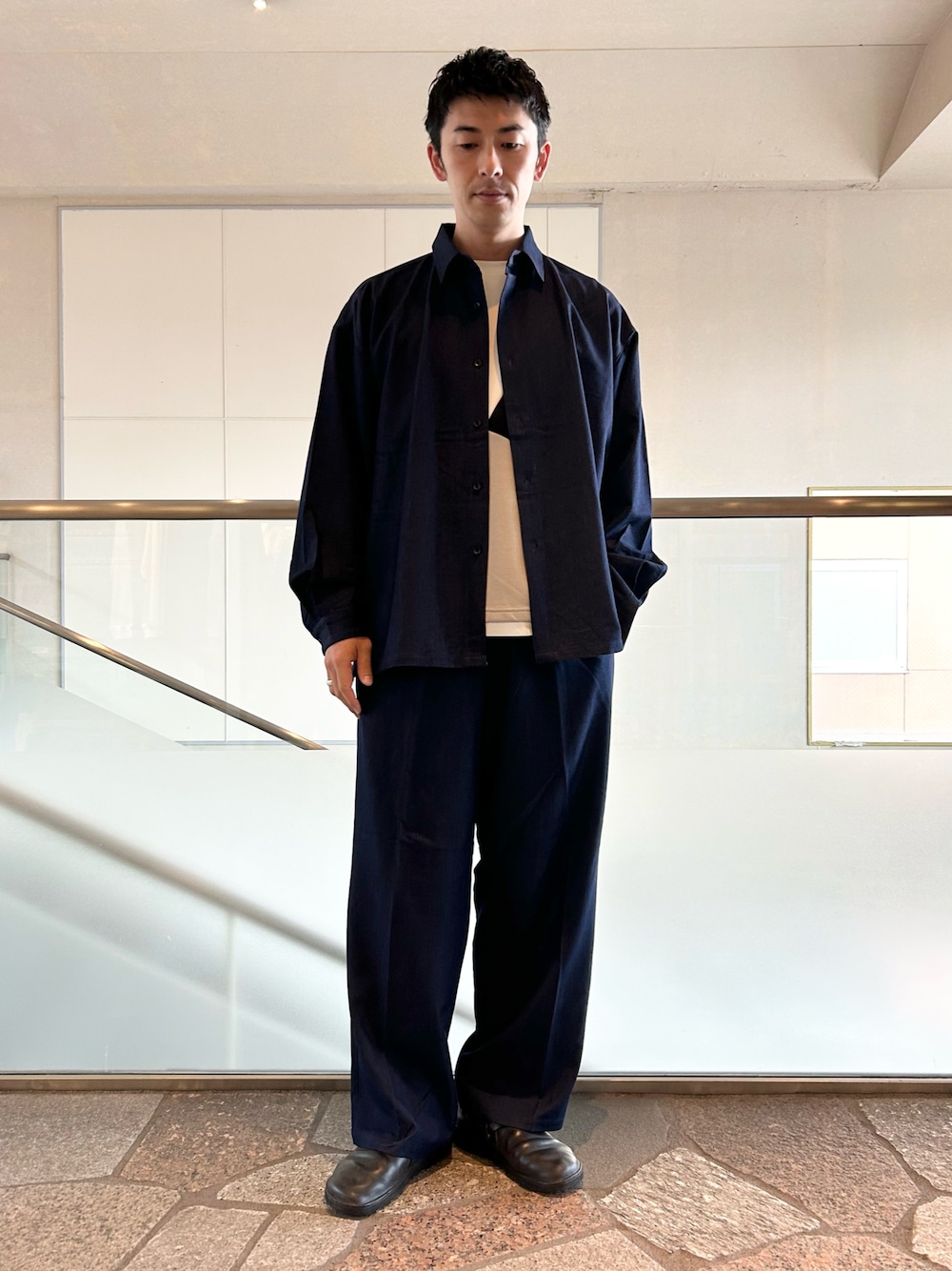 セットアップコーデ ご覧いただきありがとうございます。 デニム調のナチュラルな表面感ながらドレープ感のある生地でオススメのセットアップです。