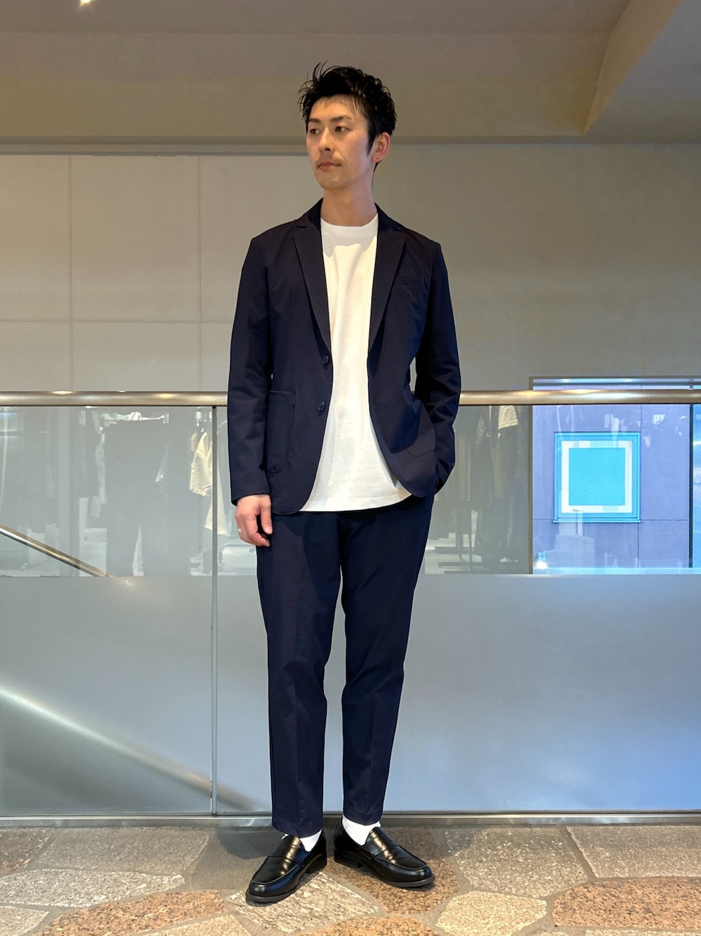 SiN(JUNRed 軽井沢・プリンスショッピングプラザ)のテーラードジャケット「【セットアップ対応】j.n.r.d/ナイロンハイカムニット2Bジャケット」を使ったコーディネート