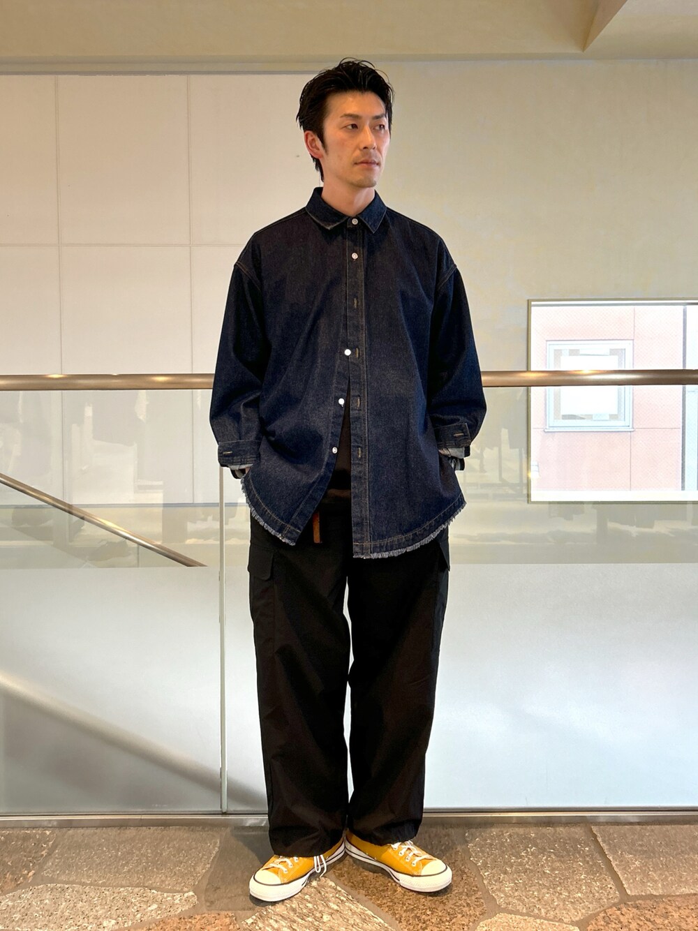 ご覧頂きありがとうございます。 デニムシャツ×カーゴの定番も裾フリンジで新しく!