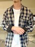 ブルー系のシャツ/ブラウスを着用したメンズの秋コーディネートの2枚目の写真