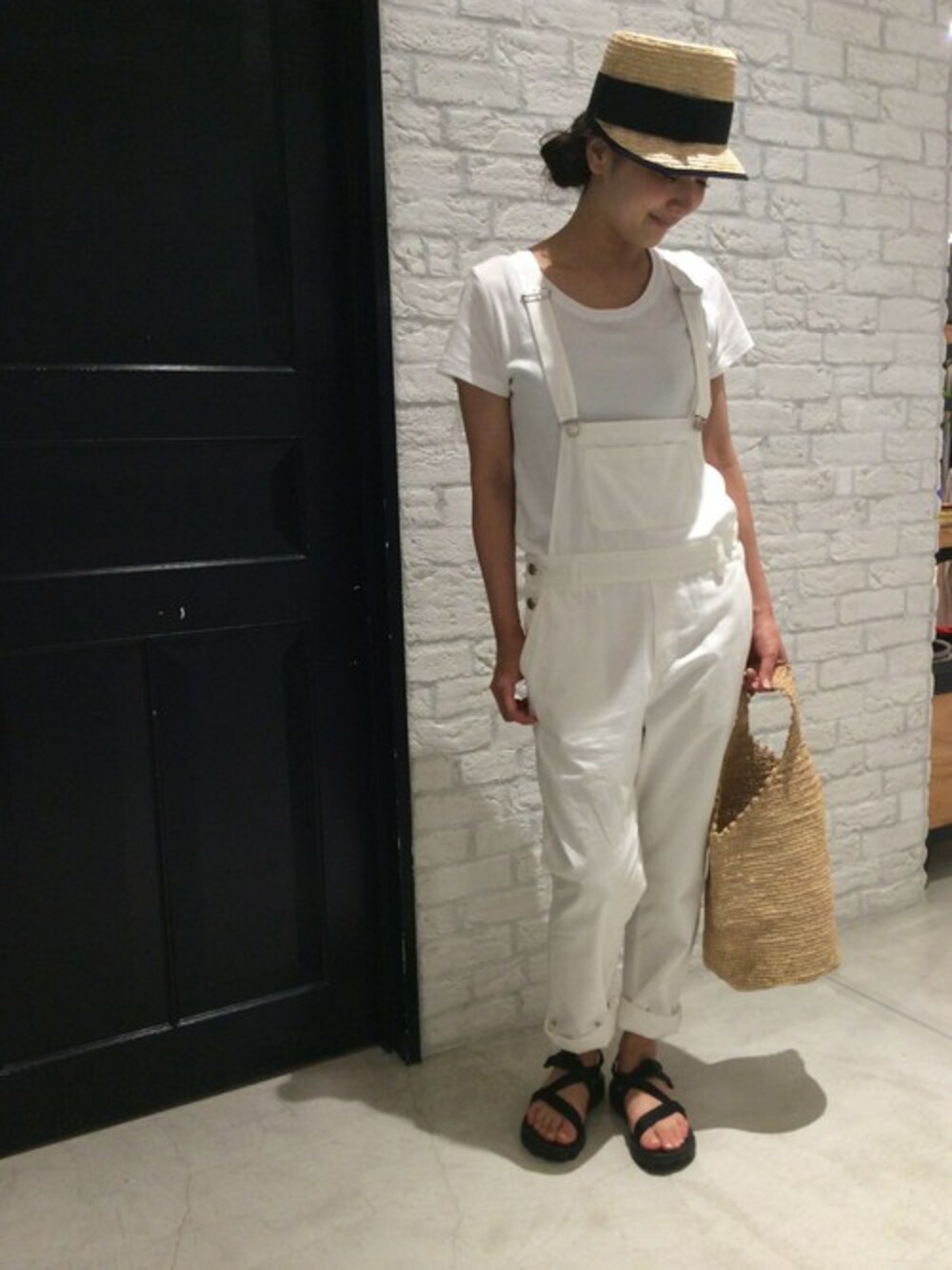 mikikoのデニムパンツ「ウェザーサロペット」を使ったコーディネート