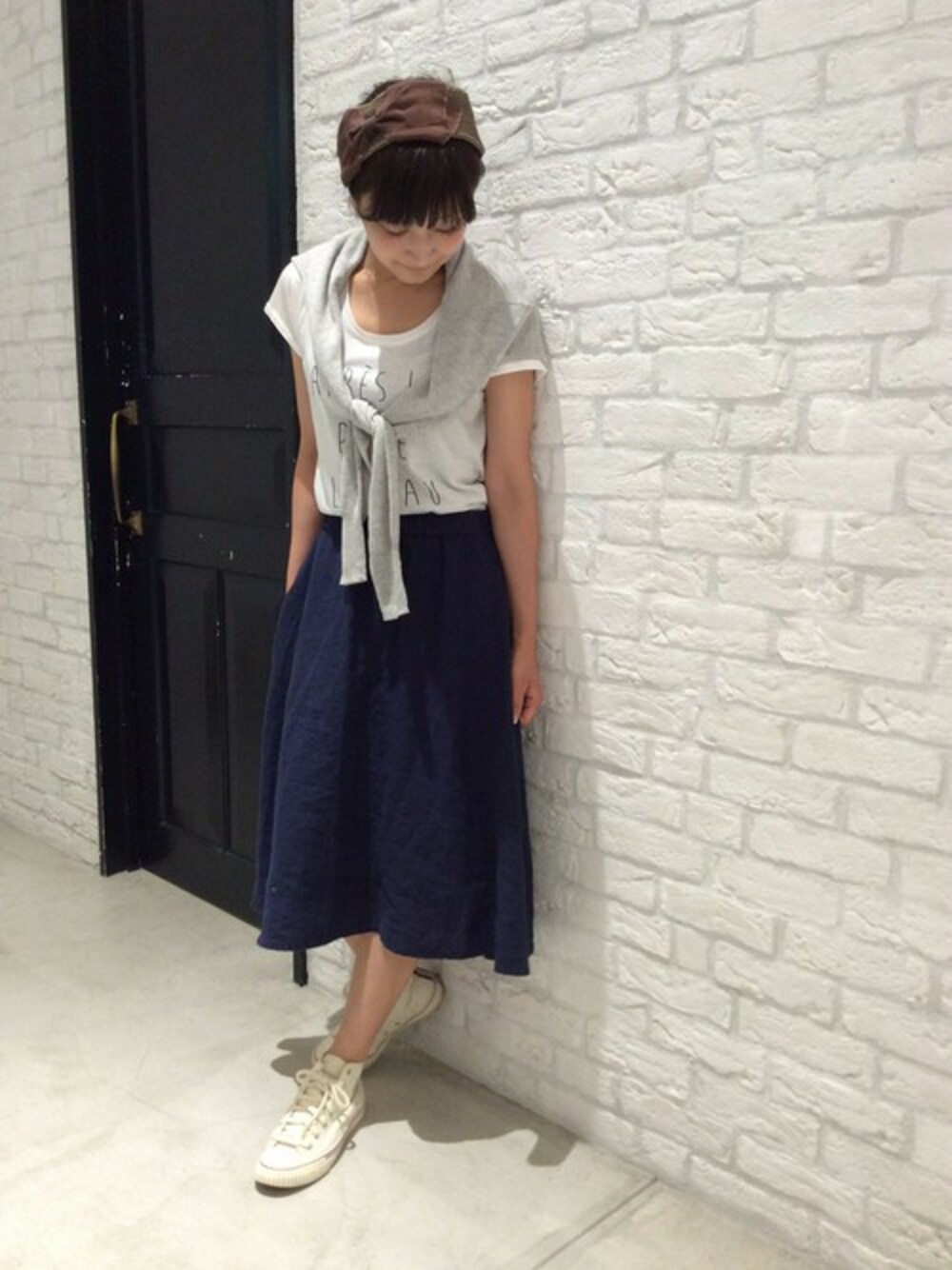 暑い季節にピッタリのリネン素材のスカートと人気のロゴTシャツ!! カジュアルでもキレイ目でもコーディネートしやすいです!!