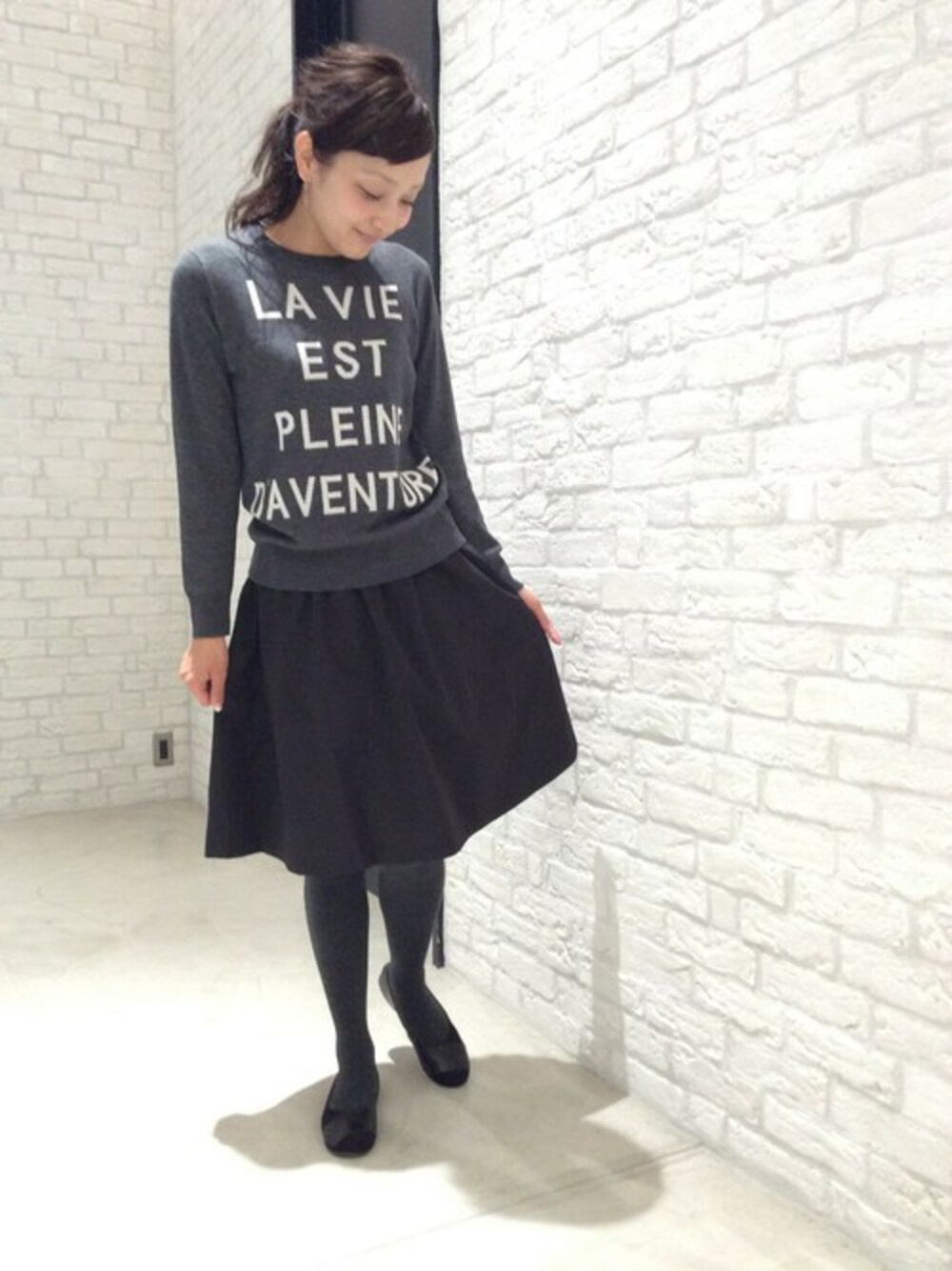 mikikoのスカート「タフタストライプリバーシブルスカート」を使ったコーディネート