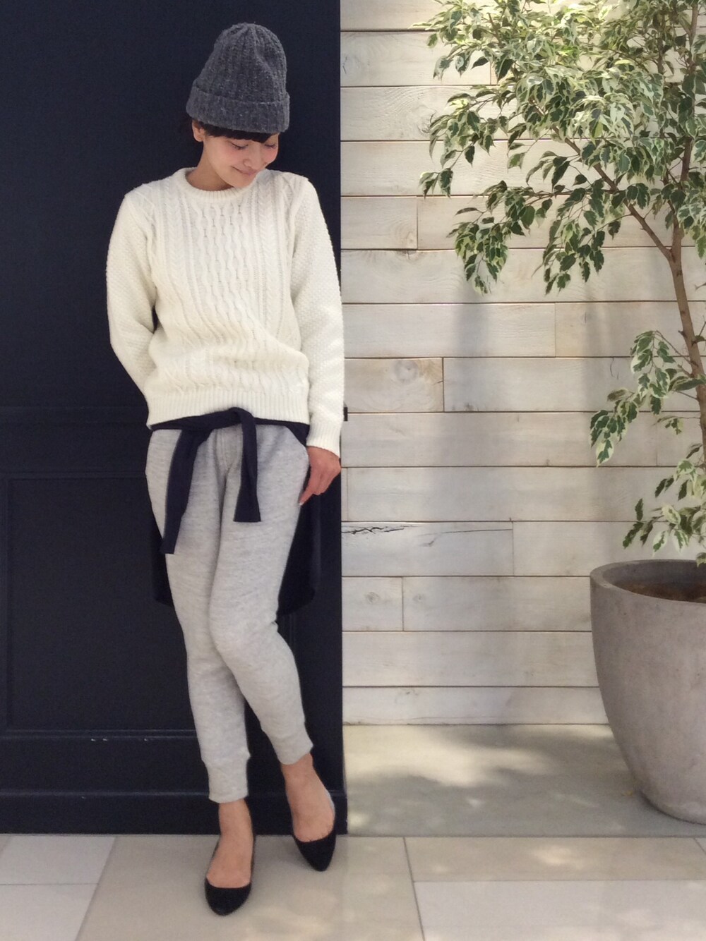 mikikoのニット/セーター「【UOMO12月号掲載】ラムナイロンケーブルニット」を使ったコーディネート