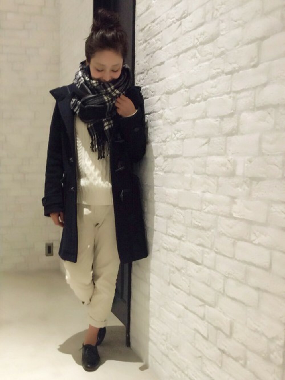敬遠されやすい全身白のコーディネイト… コートを着て縦のラインを強調するとスッキリです!! 冬の白は、可愛さ倍増です♪♪