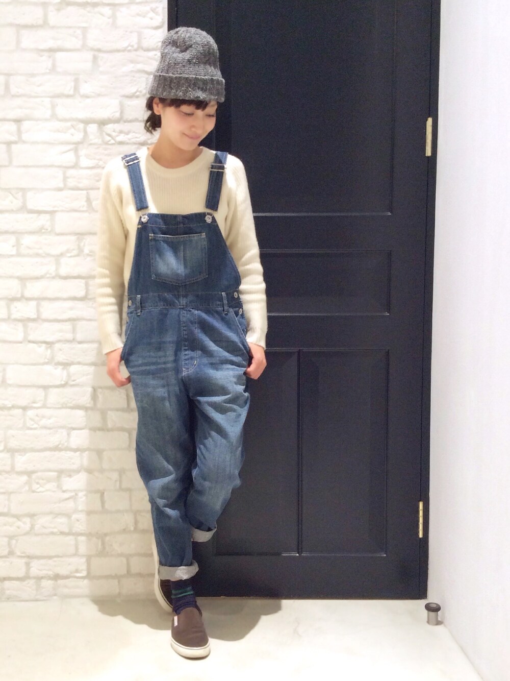 ニットとサロペットで大人のリラックススタイルにしました。