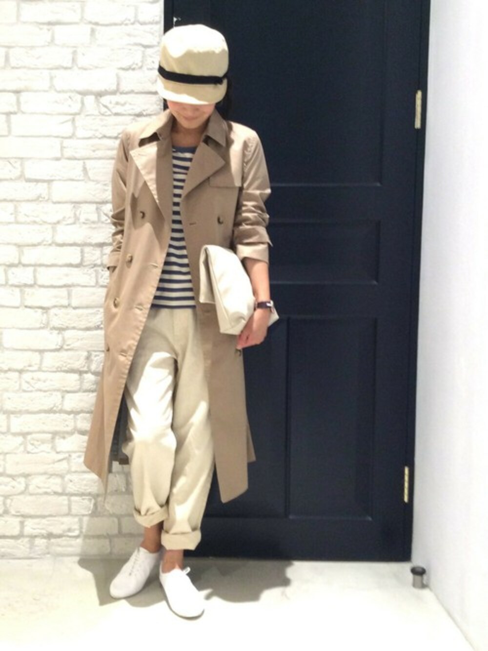 梅雨時期にもちょうどいい、撥水加工が施してあるトレンチコート! Tシャツの上からパッときてもオシャレ感抜群♪♪ 軽くて気安いのでおススメです。