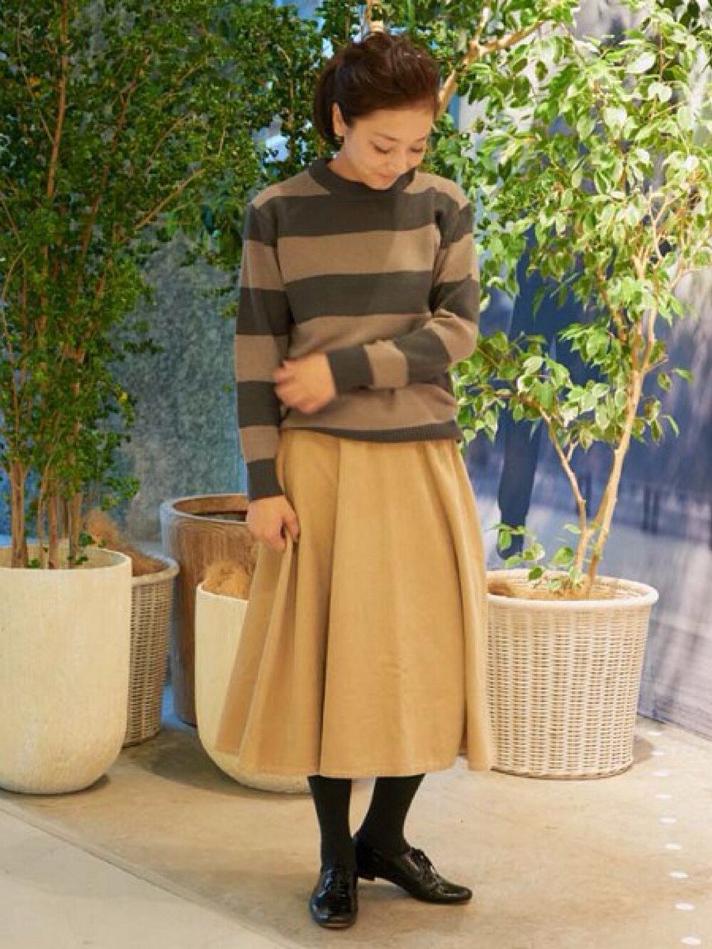 mikikoのスカート「コーデュロイフレアースカート」を使ったコーディネート