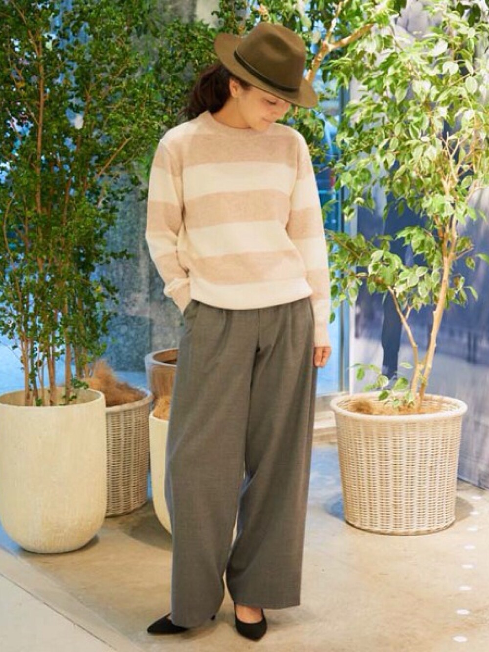 mikikoのニット/セーター「10色ボーダークルーネックプルオーバー」を使ったコーディネート