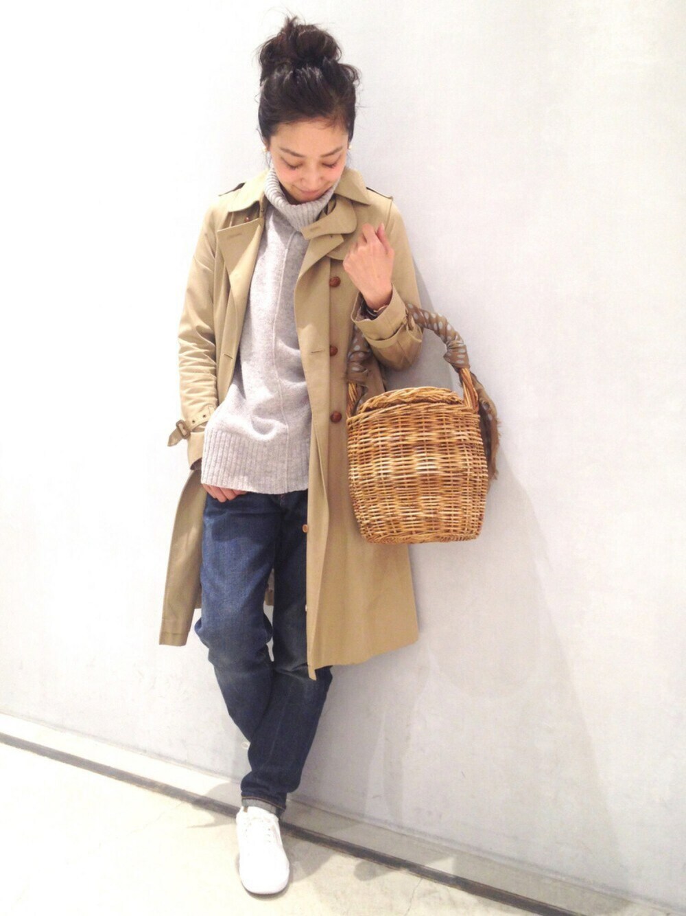 冬のカゴバッグとトレンチ。大好きな コーディネートです。