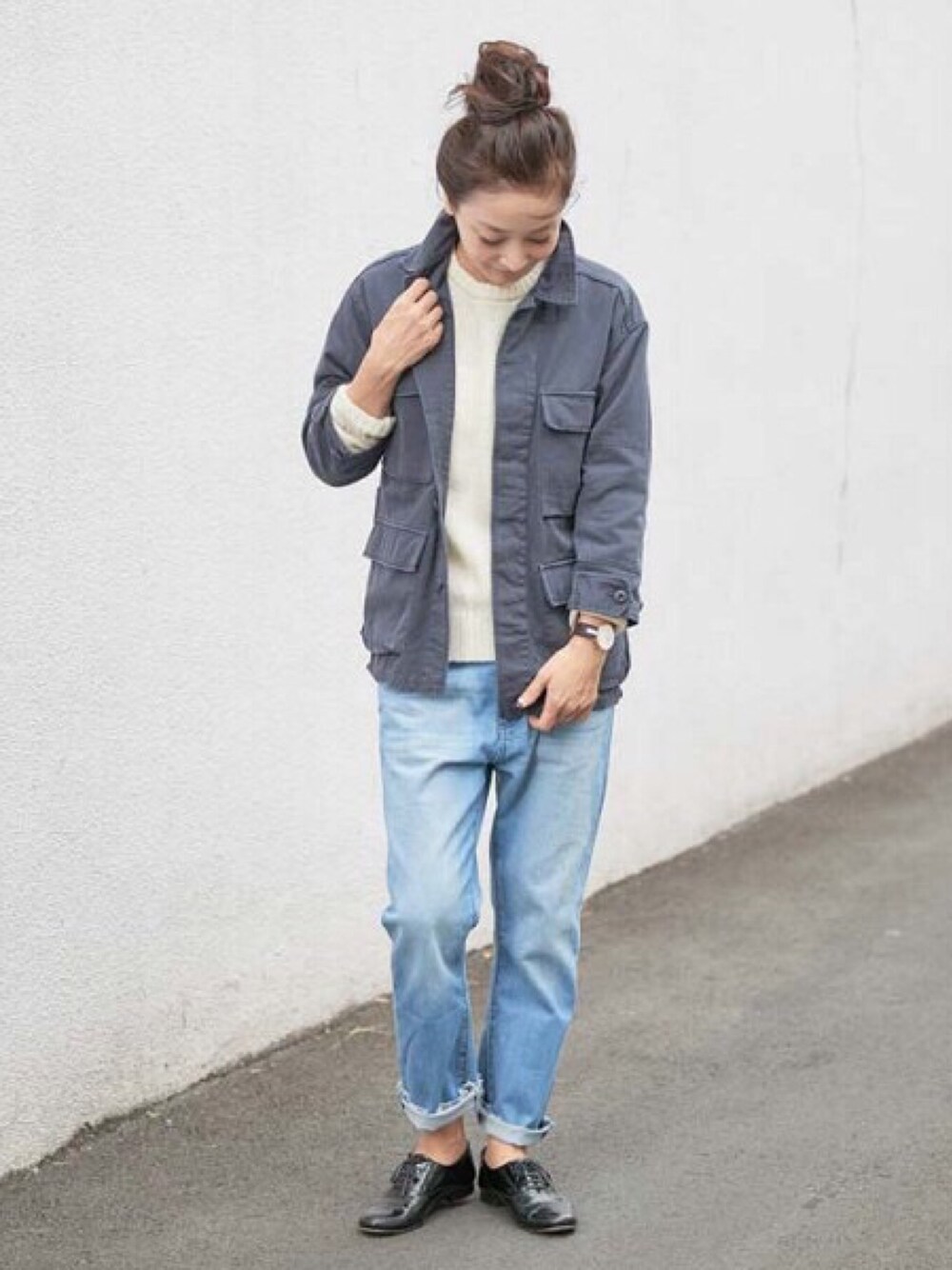 mikikoのブルゾン「コットンツイルミリタリージャケット」を使ったコーディネート