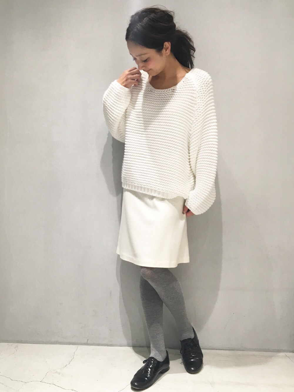 mikikoのニット/セーター「バルキーアクリルガータープルオーバー」を使ったコーディネート