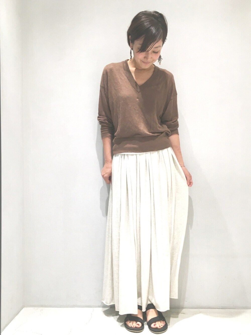 mikikoのニット/セーター「12GGリネン長袖Vネックニット」を使ったコーディネート
