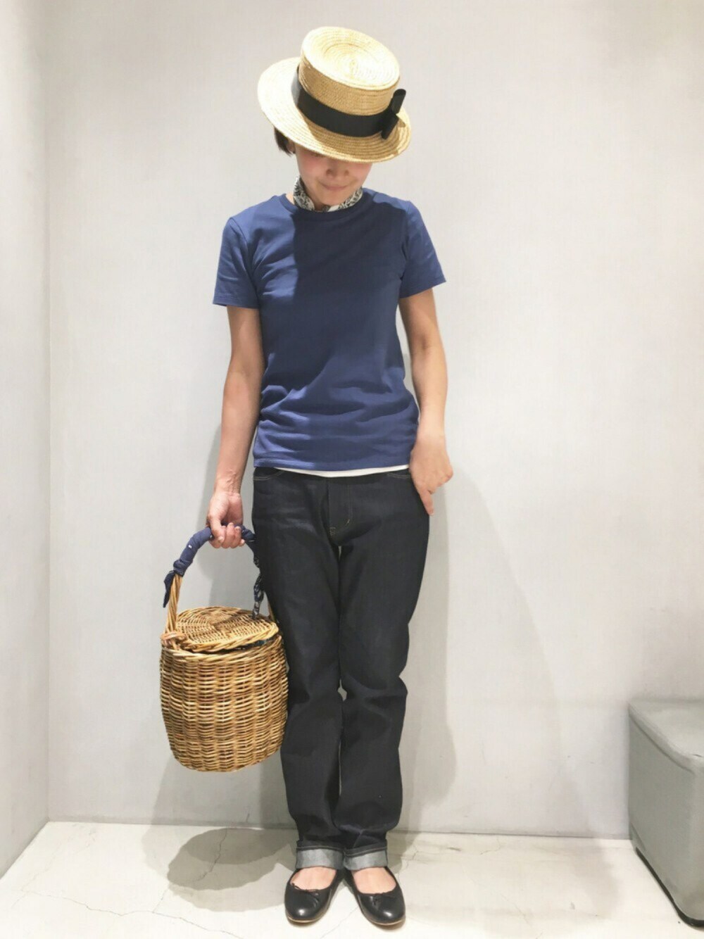 Tシャツとリジットデニムだけのシンプルな着こなし。大好きなJANE basketを合わせて、LE French♪♪