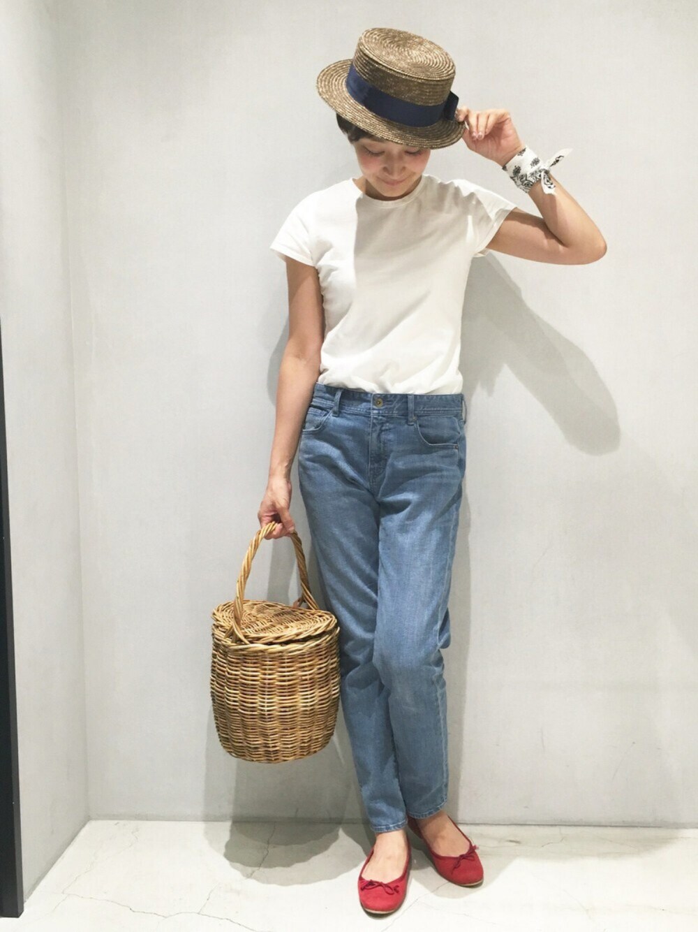 テーパードがかった細身のデニムが白のTシャツを今年らしくしてくれます。 気分はジェーンバーキン♪♪