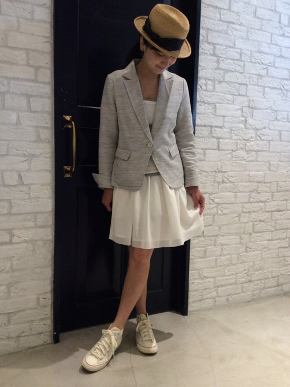 mikikoのテーラードジャケット「リネンツイル シャンブレー ジャケット」を使ったコーディネート