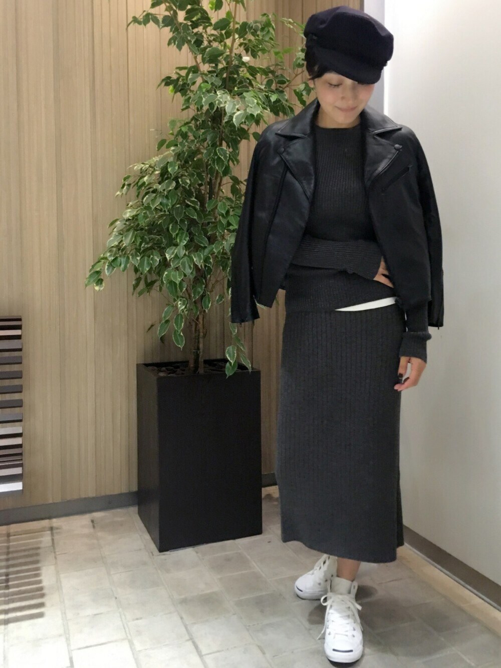 冬のフレンチスタイル。レザーとマリンキャップを合わせるだけで気分はパリジェンヌ♪