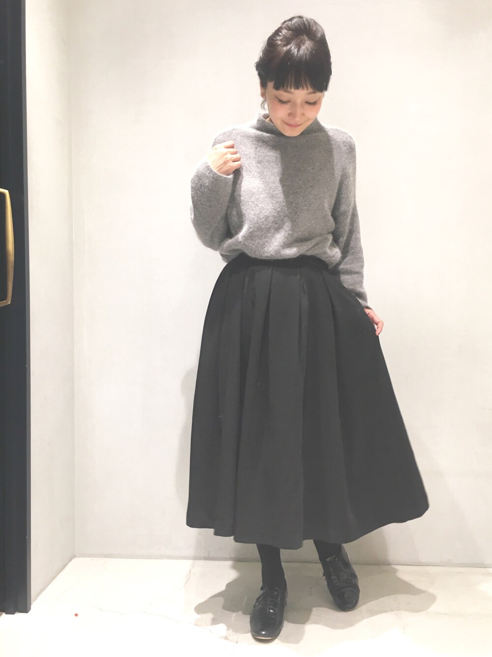 モコモコが可愛いアンゴラニット♪♪ 抱きしめたくなるほど、柔らかく肌触りがいいです。 今年トレンドのミモレ丈のギャザースカートを合わせて、レディなコーディネート。