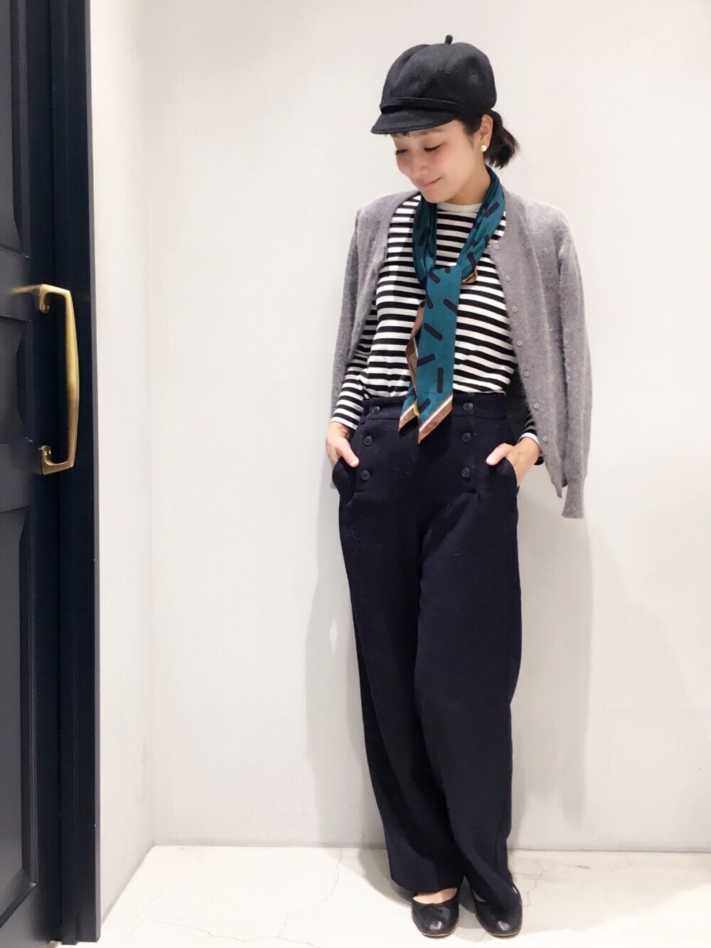 ネイビーのマリンパツンとボーダーで冬のマリンコーディネート♪♪ 今年は、クラシックさをプラスしてスカーフをオン!! ちょっとフレンチシックに!!
