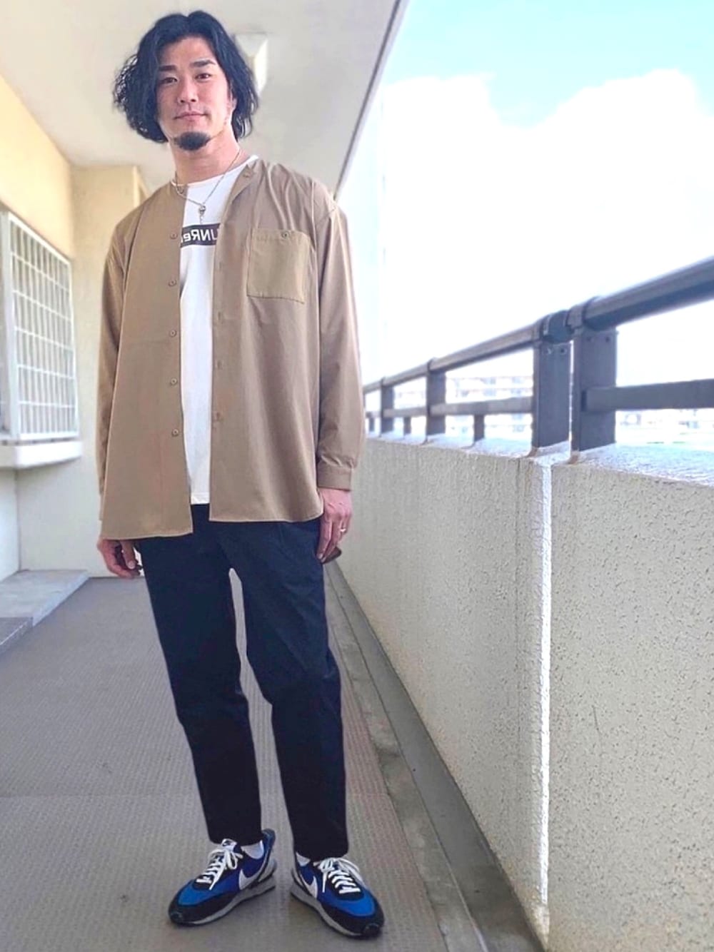 まだまだ寒暖差があるので、ロング丈のシャツを羽織につかってONOFFしやすく。ボタンの開け閉めだけで、モード⇄カジュアルの切り替えも楽しめるのでオススメです!