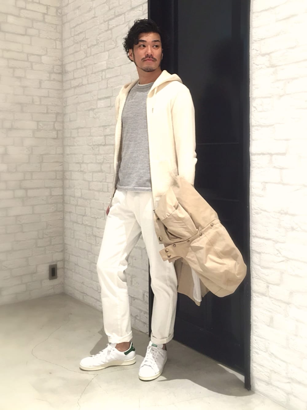 スポーツmixに綺麗めなスプリングコートを合わせて春のOFFスタイル。 淡めにまとめる事でトレンド感をプラス、 ラフな装いをコートで引き締めます。