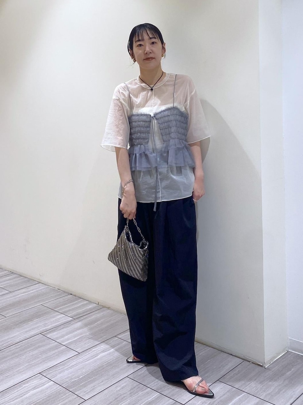 こんにちは。 ご覧頂きありがとうございます☺︎ 夏のモチベーションが上がっている今! シアーアイテムが気になってきますよね。 ノースリーブとセットのキャミソールをリアルバイしたシアーTシャツと合わせて、スタイリング♫ 見た目にも涼しげで、快適にファッションを楽しめます◎ 是非、店頭にてお試し下さいませ!