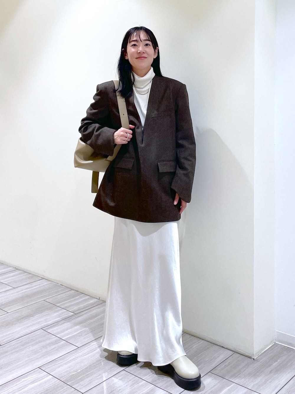 こんにちは。 ご覧頂きありがとうございます☺︎ ジャケットライクなブラウスを使って、綺麗めな女性らしいコーディネートのご紹介です! 私がリアルバイしたこちらのブラウス。 いつもはパンツスタイルで、かちっとした感じで着てますが…スカートの相性も◎ 気になる腰回りも気にならない合わせで^ ^ しかも意外とあったかい…! ジャケットライクブラウスは、セール対象となっておりますので、是非店頭にてお試し下さいませ♩