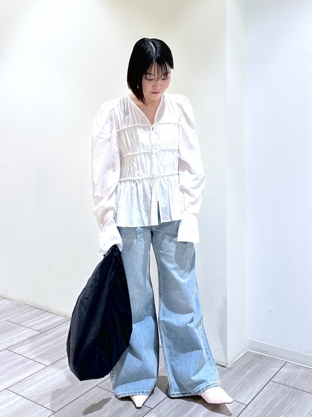 こんにちは(^^) 本日は、店頭でも大人気のブラウスをご紹介します。 ギャザーとパフスリーブで女性らしい雰囲気ながらも 可愛くなりすぎないデザインで大人の方にもおすすめです◎ オーガニックコットンの柔らかい風合いが涼しげな印象で これからの暑い時期にも合わせやすいですよ♪ 一枚でも、Tシャツなどに羽織っても◎ pants:EUS34550 【Levi's for BIOTOP】L28 EX BAGGY DAD WIDE LEG bag:EUX34040【AMOMENTO】