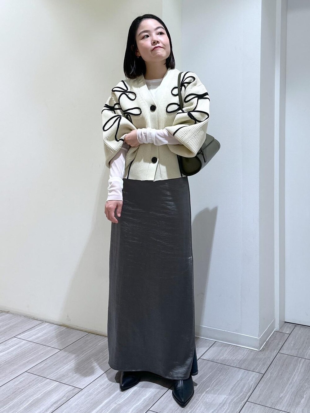 こんにちは(^^) 今回は、ネットでも大人気のカーディガンをご紹介いたします! 綺麗めにもカジュアルにも合わせやすいカーディガン。 袖や身幅がゆったりしていますが、ウエスト丈なのでボリュームスカートやワイドボトムとも相性◎ やや厚みのある素材感で、一枚でトップスとしても活躍します! アーム部分が余裕があるので、インナーを変えて秋~春まで3シーズン使えますよ♪