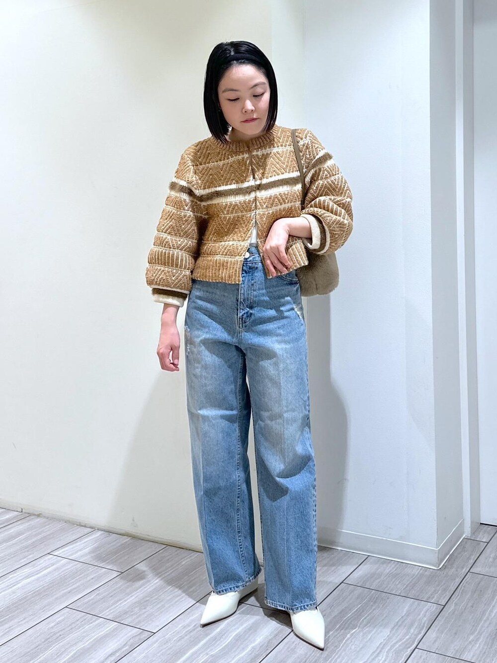 こんにちは(^^) 今回は、店頭でも大人気のカーディガンのご紹介です! 柄が目を惹くカーディガン。 袖のたぽっと感がラフに着こなせて◎ ウエスト丈なので小柄な方もバランスが取りやすく、ワイドデニムやボリュームのあるスカートとも合わせやすいです! ボタンではなくホックで留めるタイプで、大人っぽく抜け感が出るのも推しポイントです◎