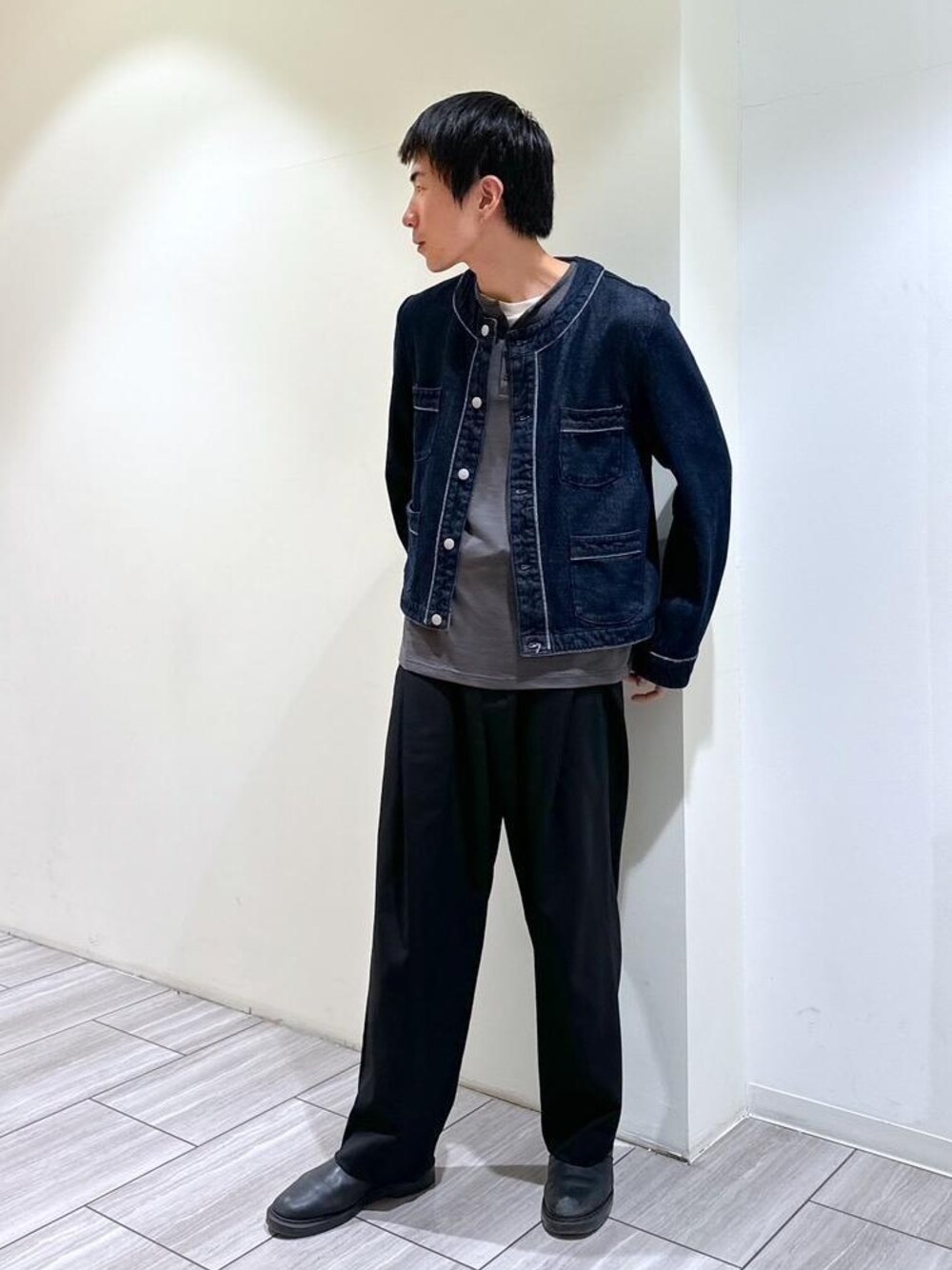 春はデニムが映えますね! こんにちは! 今回は春のスタイリング紹介です。 今年トレンドのデニム。 カラーレスジャケットデザインで、男らしい印象を残しつつ上品な雰囲気で着用できます。 カジュアルパンツはもちろん、スラックスとの相性◎