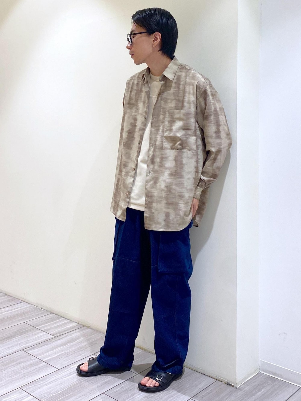 こんにちは! 今回は新規入荷アイテムを使ったスタイリングのご紹介です! トップスはニュアンスカラーと柄の組み合わせが雰囲気あるロングスリーブシャツ。 柄物を普段着られない方でも取り入れやすいデザイン! スラックス合わせで綺麗めに着るのもおすすめです!