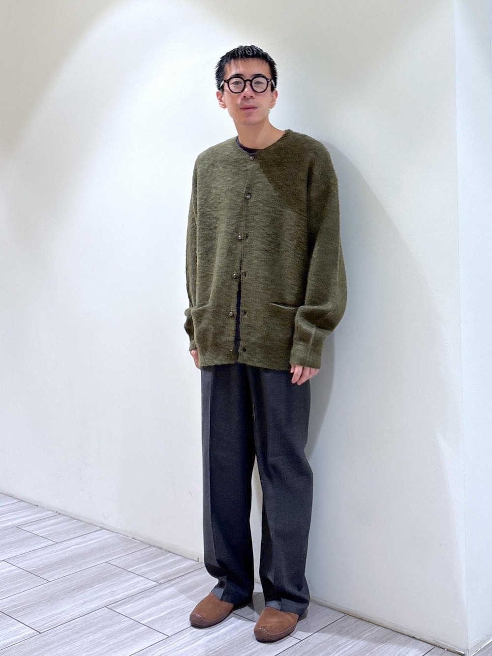 カーディガンの季節になってまいりました! こんにちは! 今回は秋冬定番の人気シリーズのカーディガンのご紹介です。 ゆるっとしたサイズ感にカラーネックカーディガンの相性が非常に良い! デニムで合わせればカジュアルなスタイリングのアクセントに! スラックスで合わせれば品がありつつどこか抜け感のある絶妙なバランス! 秋冬にかけてコーディネートの幅を広げてくれること間違いなしです!