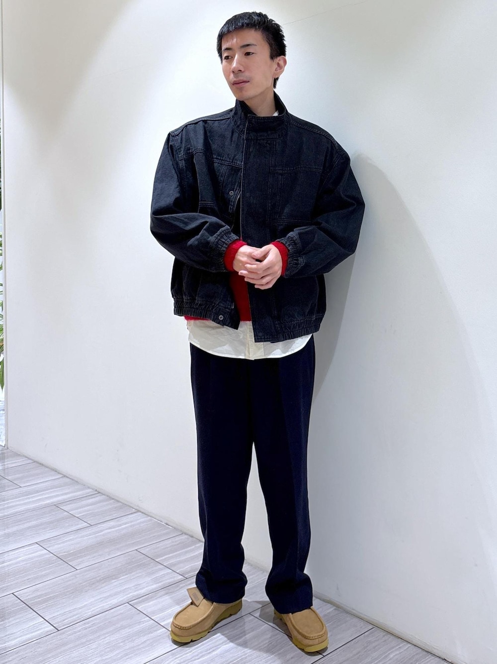 こんにちは! 今回は定番アイテムを使った冬のコーディネート紹介です。 冬になりコートやダウンが多くなる中、 デニムをメインにレイヤードするのも気分を変えれていいですよね〜 冬場のマンネリを避ける為にも、色物ニットなどを入れたりと様々な見え方が楽しめる1着です!