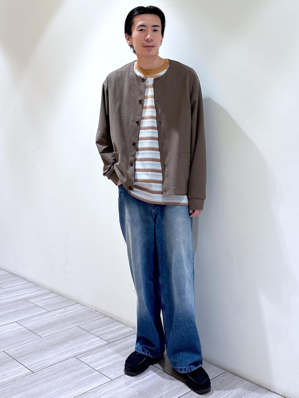 吉田 (ADAM ET ROPE' 福岡PARCO)のデニムパンツ「【WILD LIFE TAILOR】セルヴィッチ 5ポケット ストレート デニムパンツ」を使ったコーディネート