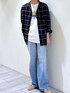 吉田 (ADAM ET ROPE' 福岡PARCO)のシャツ/ブラウス「【WILD LIFE TAILOR】オンブレチェック ドレープ オープンカラーシャツ」を使ったコーディネート