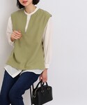kaori(SHOO・LA・RUE)のベスト「◆麻混ヘリンボーンVネックベスト」を使ったコーディネート