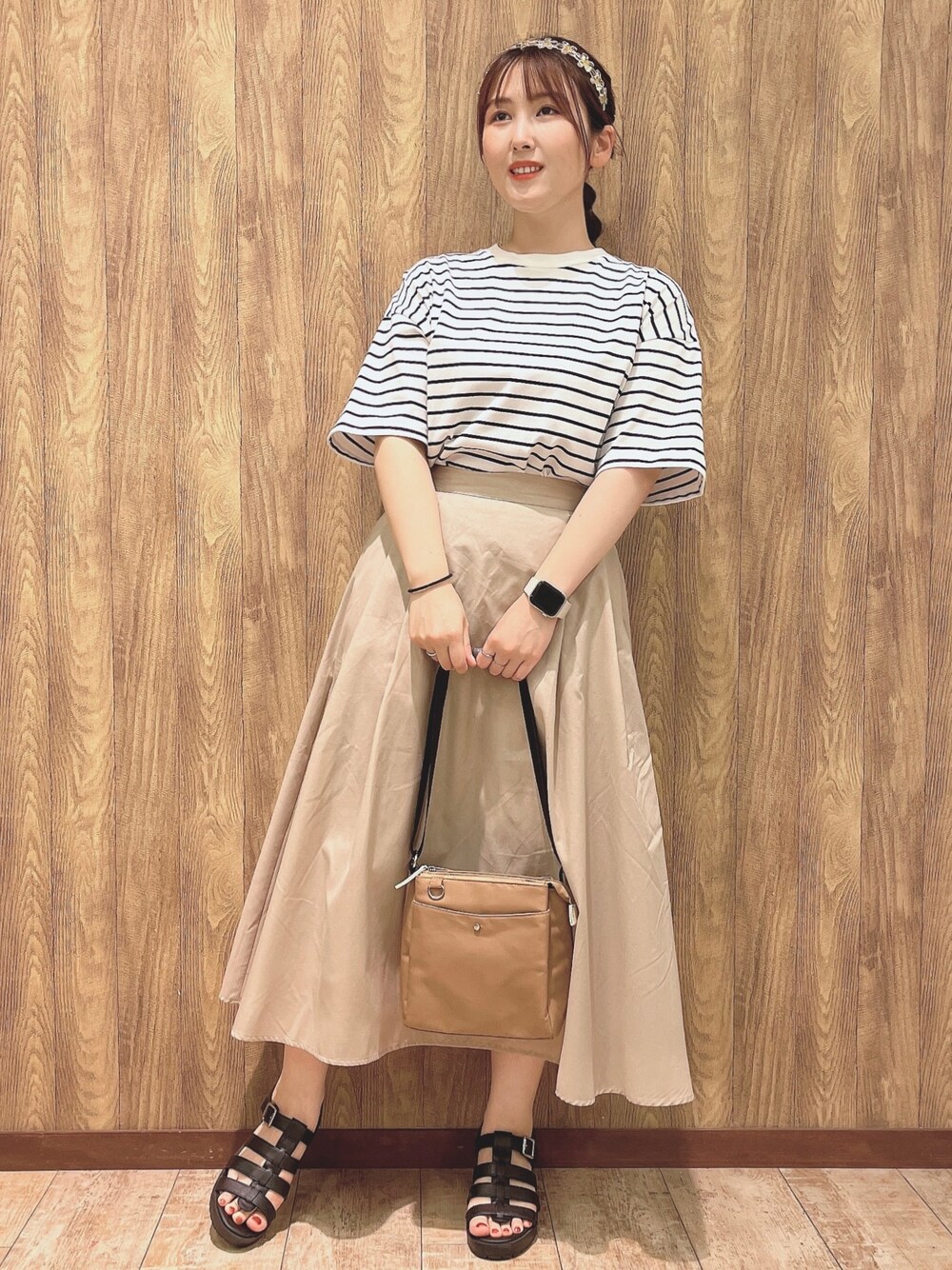 kaori(SHOO・LA・RUE)のTシャツ/カットソー「◆【遮熱/接触冷感/UVカット】AIR SHIELRD オーバーサイズTシャツ」を使ったコーディネート