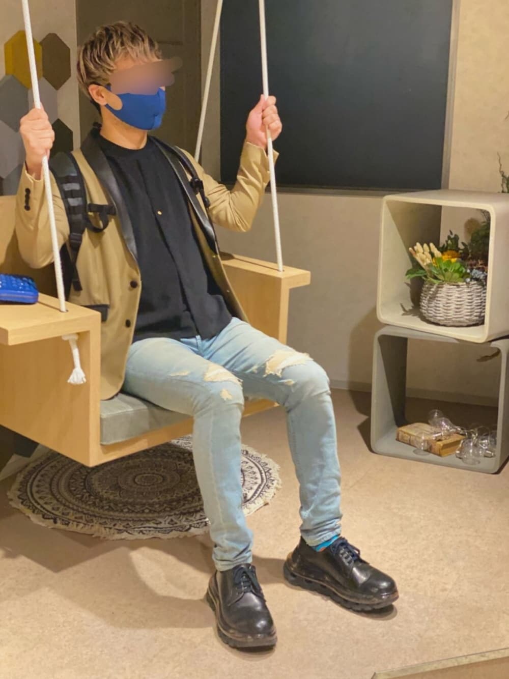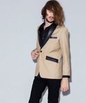 ぼくです( ˙-˙ )のテーラードジャケット「レザー切替ショールカラーJKT」を使ったコーディネート