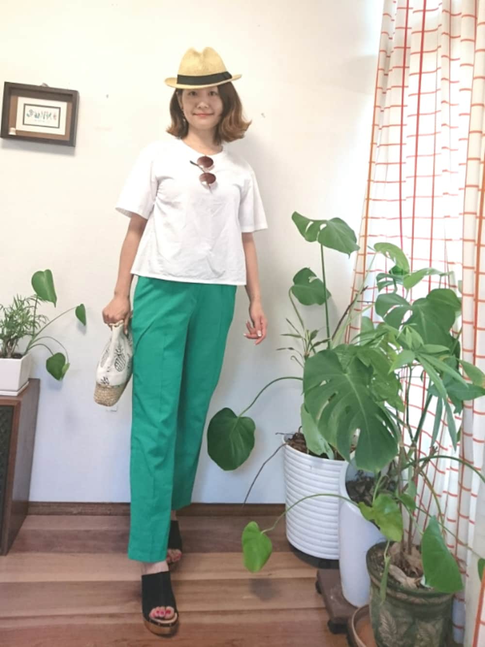 差し色のグリーンを効かせてみました!コーデ♪