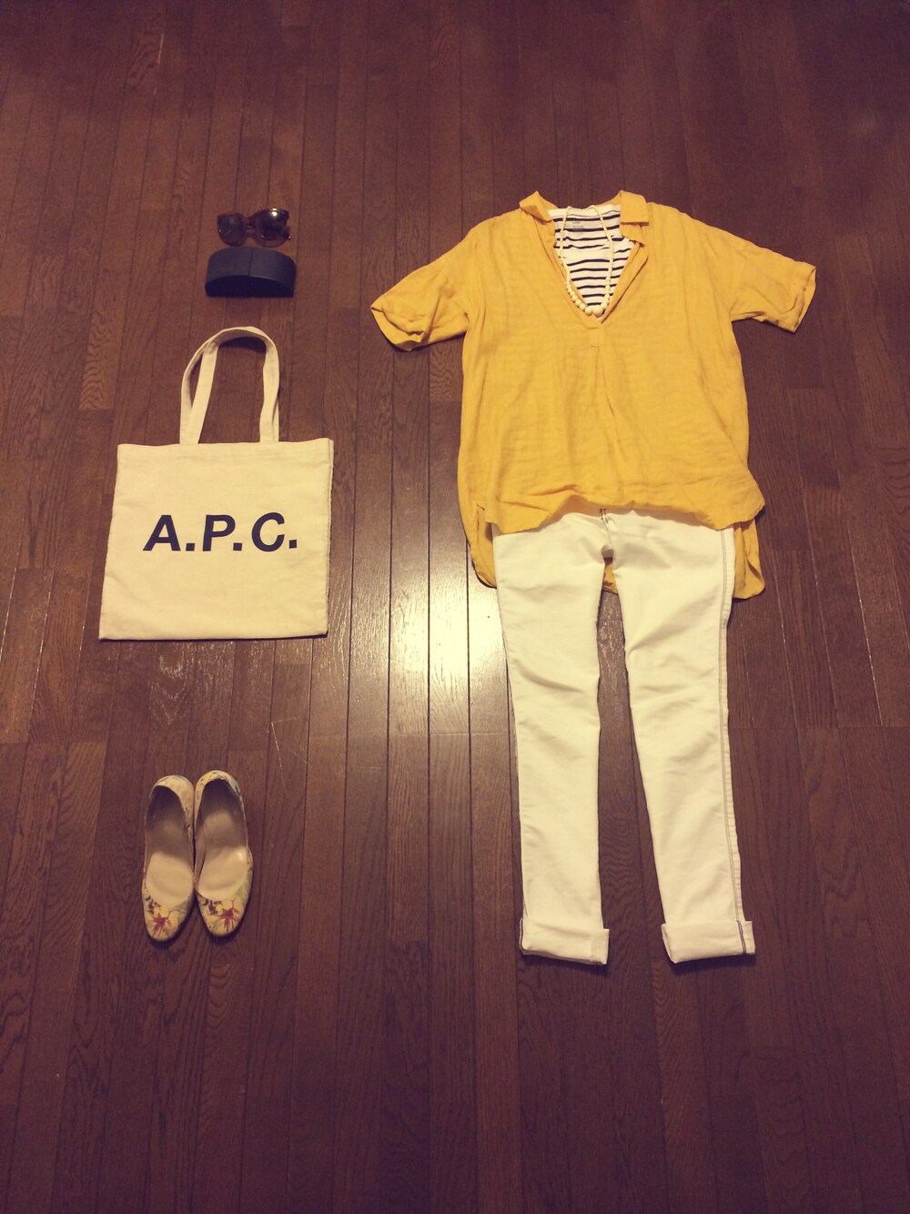 Kaoru 0のシャツ/ブラウス「IENAイエロー麻チュニック」を使ったコーディネート