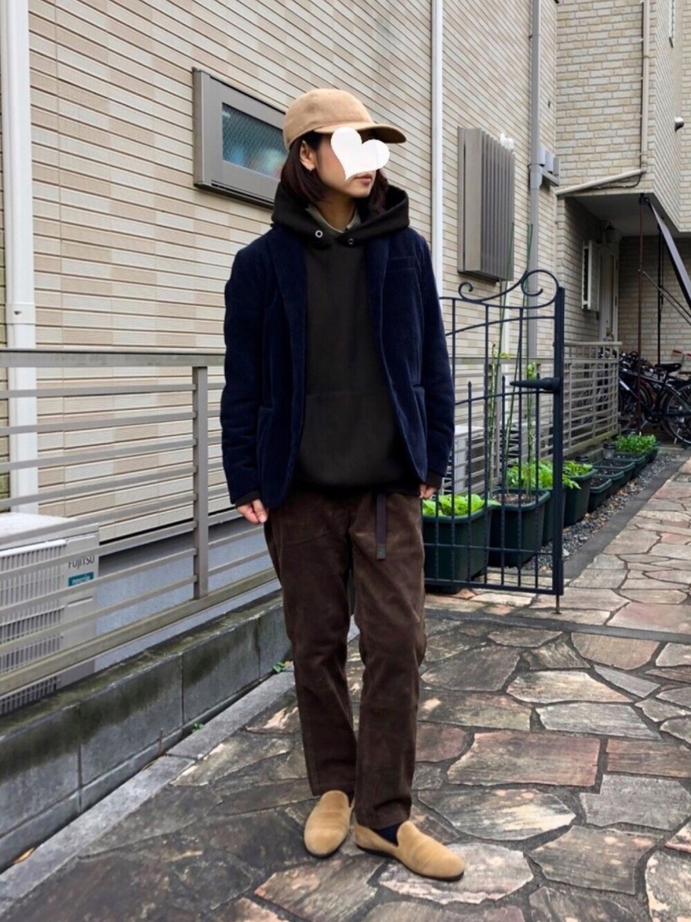 コーデュロイパンツはGRAMICCI × BEAMS BOYの別注品。 ブラウンを軸に、重ねて重ねて。 パーカーにジャケットでもこもこだけど、あったかい😌