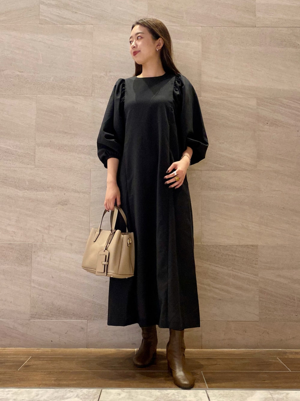 Fby Rossoのボリュームスリーブワンピース◎ カジュアルから綺麗めシーンまで しっかり使える一枚。 袖にボリュームがあるので、 シンプルながらトレンドチックな印象に☺︎ 今回はブーツと合わせて カジュアルにコーディネートして見ました〜♡