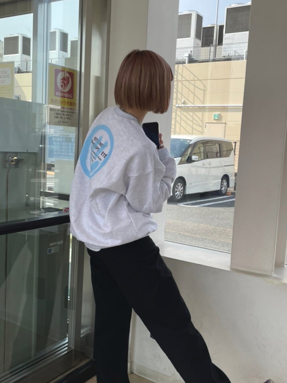 415dayonのスウェット「【ISTKUNST】LOGO & SMILEY SWEATSHIRT / イストクンスト ロゴ アンド スマイリー スウェットシャツ」を使ったコーディネート