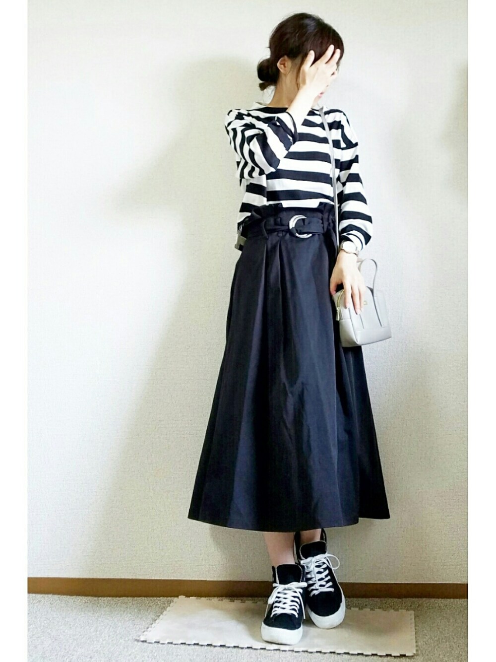 ボーダーのモノトーンコーデ👖👚 IENAのミニバッグは雑誌の付録とは 思えないくらいの実用性!👜